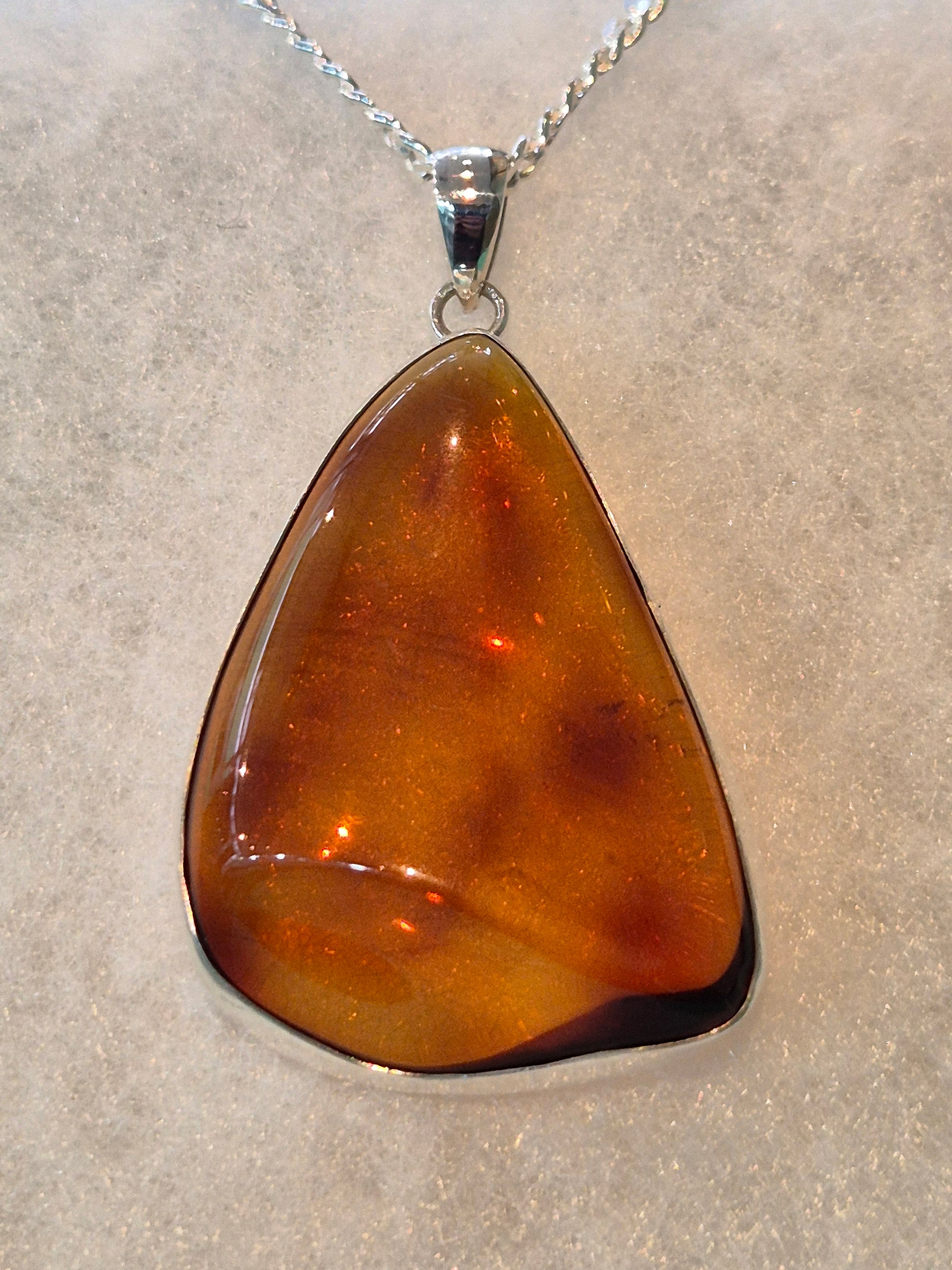 Pendant: Cherry Amber (collectors piece) set in silver 925.
