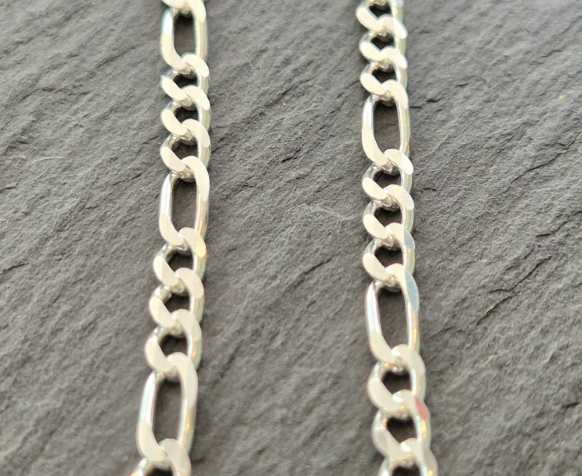 Chain: silver 925, figaro link chain. This is a heavy statement piece.